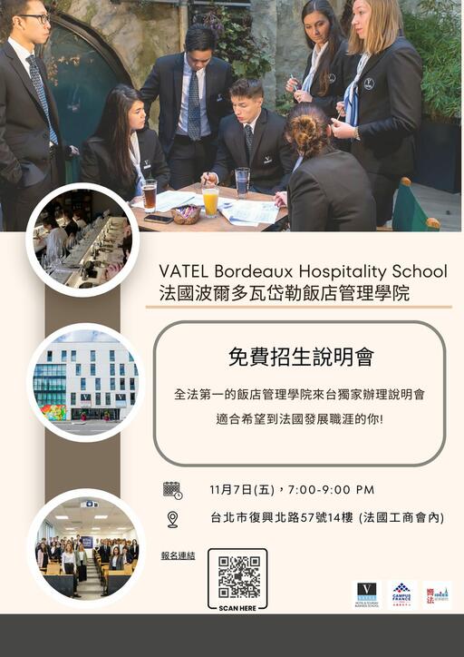 11/7(五)法國飯店管理學院講座【VATEL Bordeaux 法國波爾多瓦岱勒】